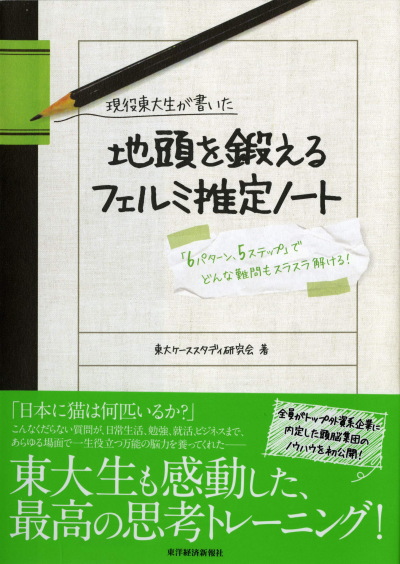 現役の東大生が書いたという話題の本が東洋経済新報社から出版されている「地頭を鍛えるフェルミ推定ノート」です。これは1000以上のフェルミ推定問題を解いたという東大生達が、その取り掛かり方法と解法ステップについて体系化した内容で注目を浴びているのです。